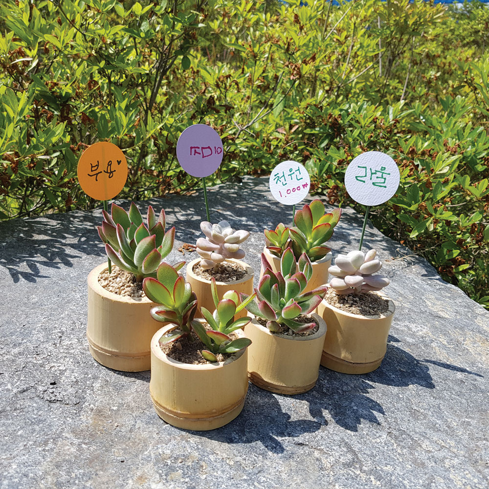 - 식물을 이용하여 여러 가지 재료들로 인테리어 소품을 만드는 직업체험 - 미니다육화분만들기- 행잉테라리움- 대나무테라리움